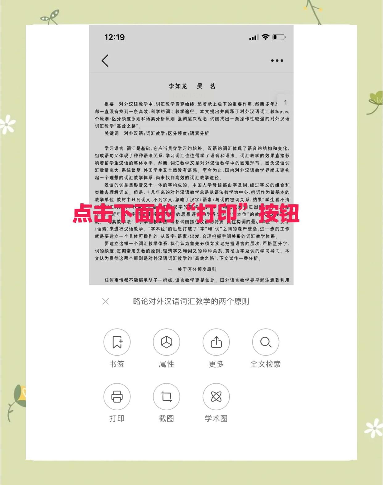 3. 打印按钮是关键:进入阅读界面后,右上角有三个小点点(菜单键),点一下,下面会弹出“打印”选项,点它!