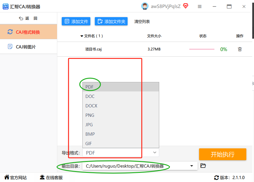 3. 设置输出参数:右边会弹出输出格式选项,一定要选“PDF”!然后注意创建一个独立的输出文件夹,这样就不会把原来的CAJ文件覆盖掉啦,比如你可以在桌面新建个“转换后PDF”文件夹,选好路径。