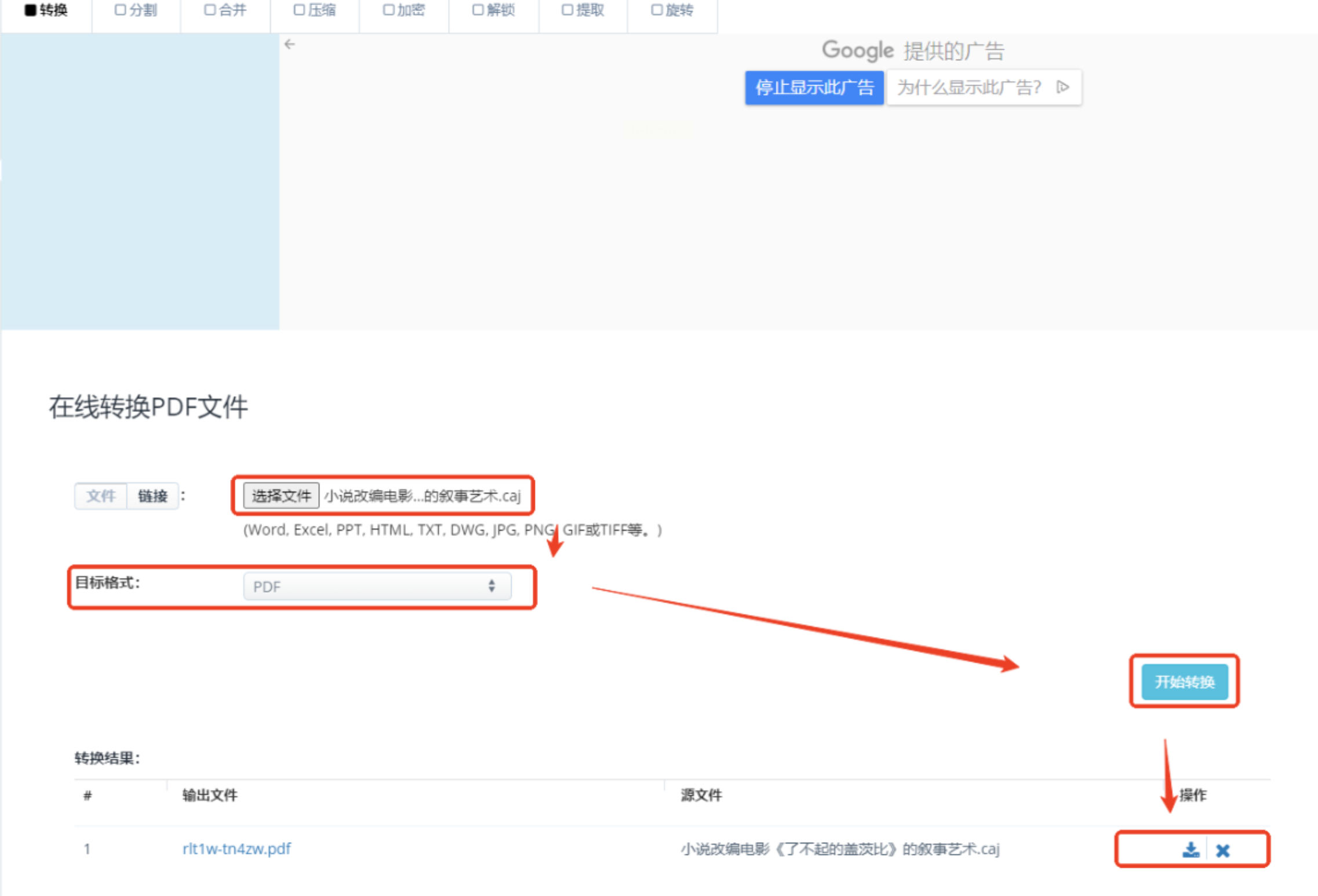 注意:转换过程中可能显示广告,适合临时救急使用。