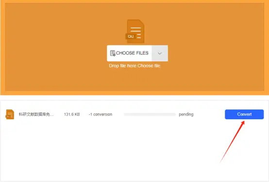 Step2:点击「添加文件」,可单个文件添加或直接拖入多个CAJ文件(支持批量)