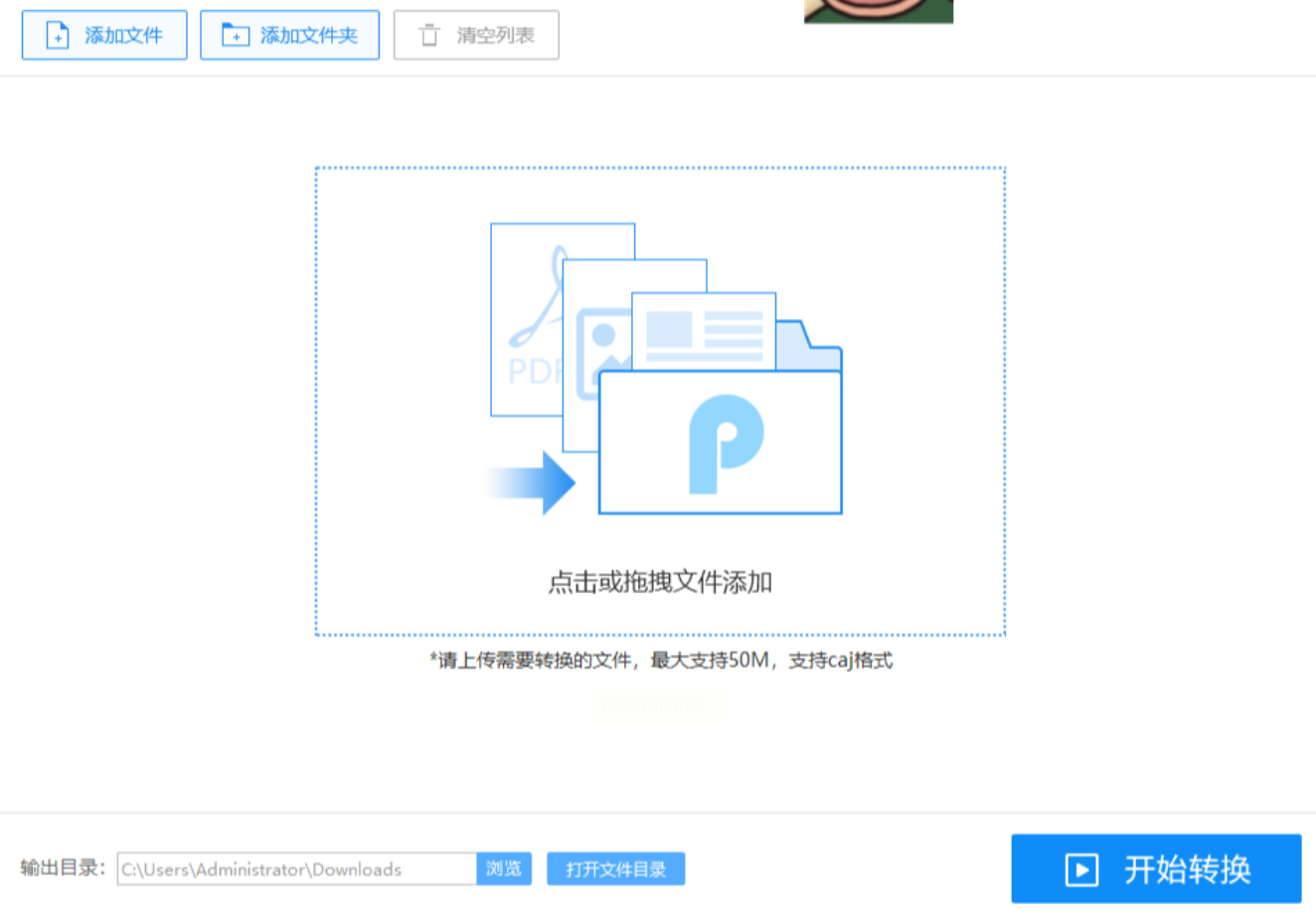 1. 功能选择:打开软件后,选择“CAJ转换”模块,支持批量导入文件(最多同时添加50个文件)。