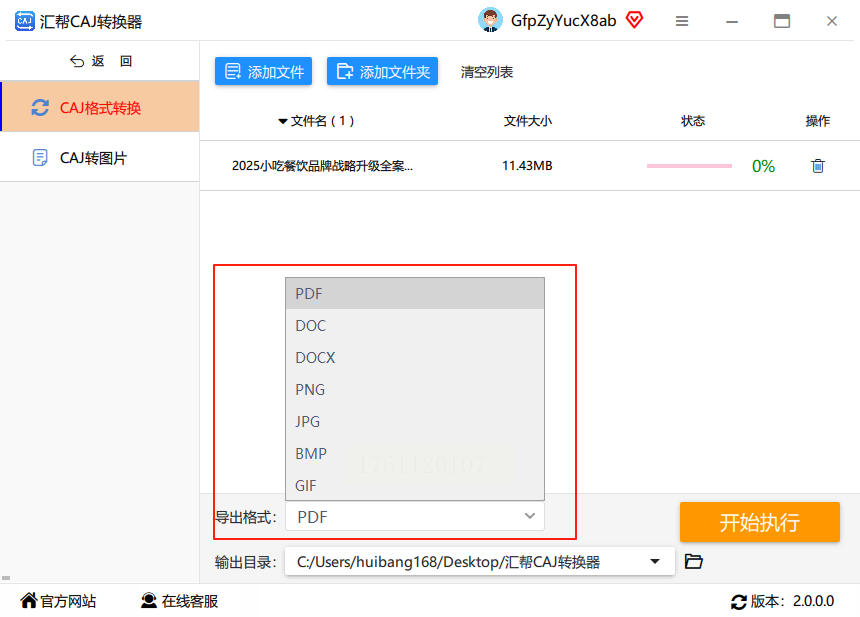 步骤3:文件导入后,在右侧面板设置导出格式为「PDF」,并选择输出目录(可默认保存到桌面)。