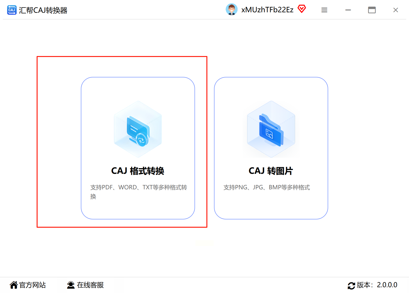 Step1:打开汇帮CAJ转换器,在首页选择“CAJ转Word/PDF/TXT”功能。