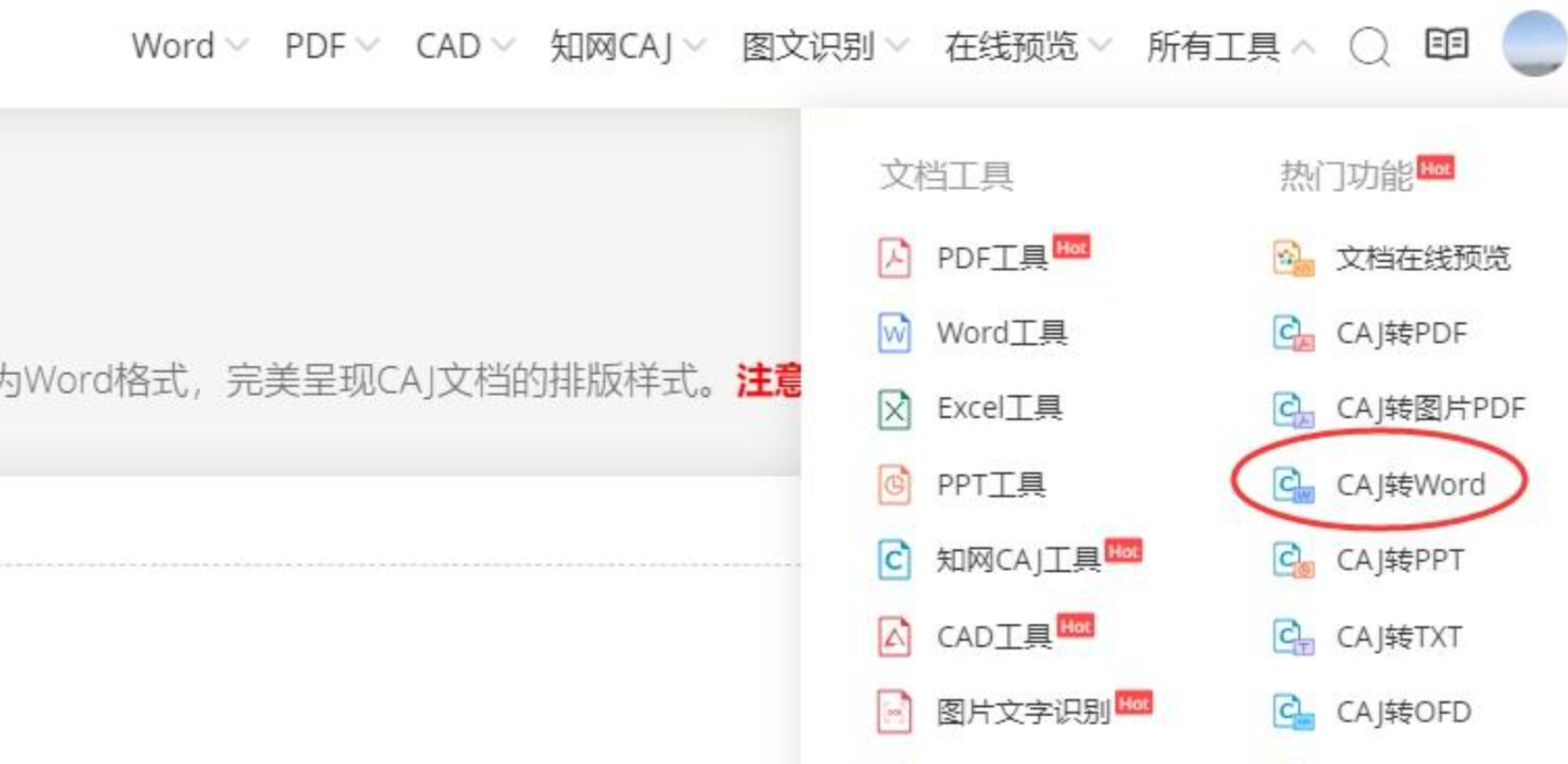 Step1:打开易转换官网,在“所有工具”栏目中找到“CAJ转Word”。
