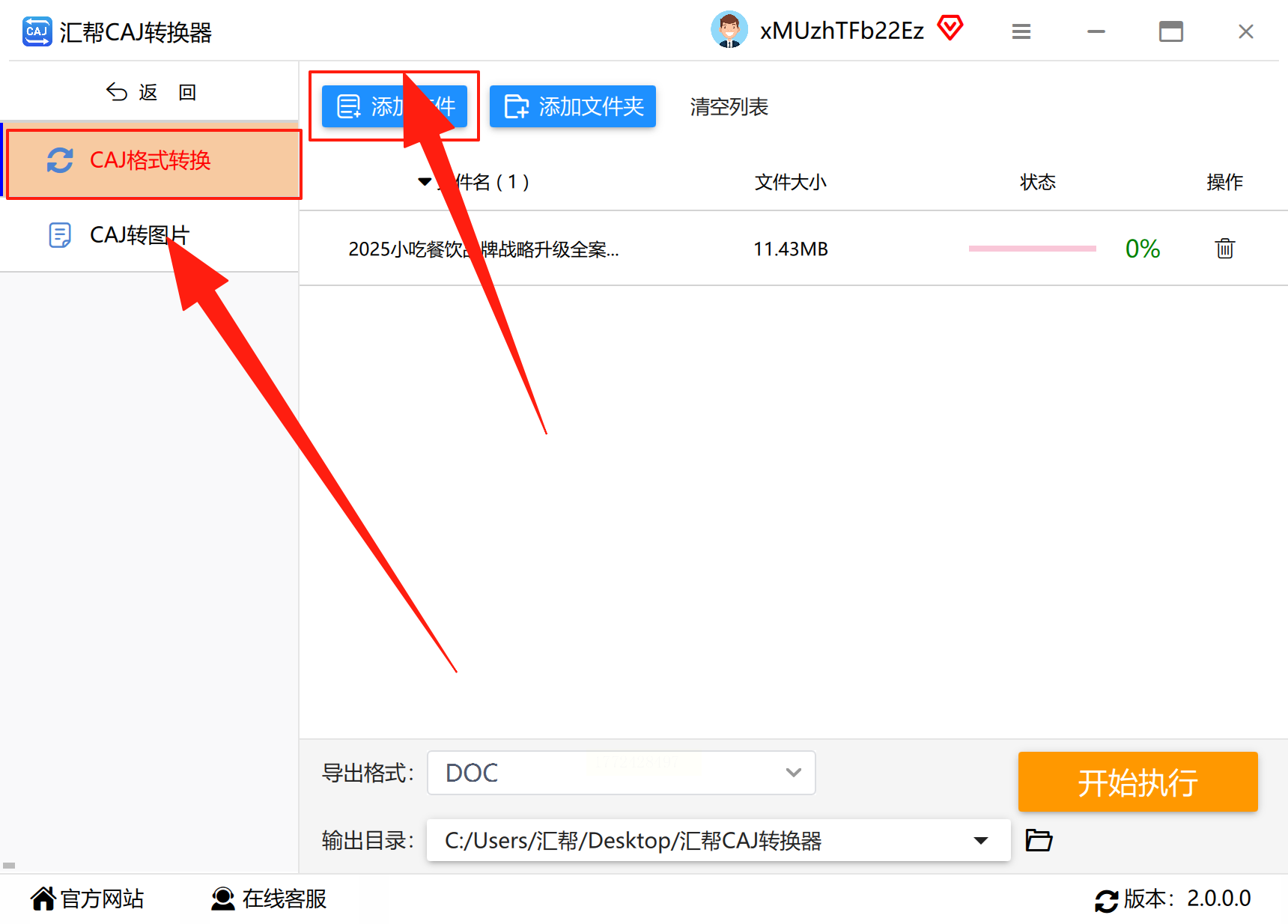 Step2:点击“添加文件”按钮,或直接将CAJ文件拖拽到软件界面的文件框中(支持批量添加多个文件)。