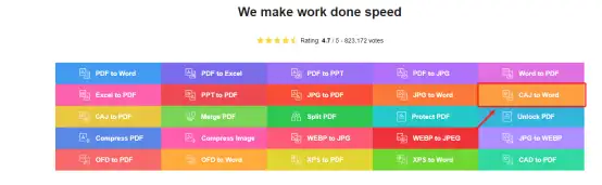 Step1:打开SpeedPDF官网,在功能栏选择“CAJ转Word”。