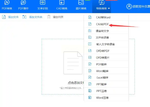 2. 选择转换功能:在主界面上方点击“特色转换”,在功能列表中找到“CAJ转PDF”选项。