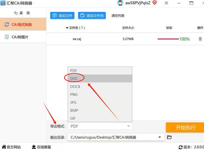 4. 添加完文件后,把目光移到界面底部。找到“导出格式”这个选项,从下拉菜单里选择“DOC”格式。