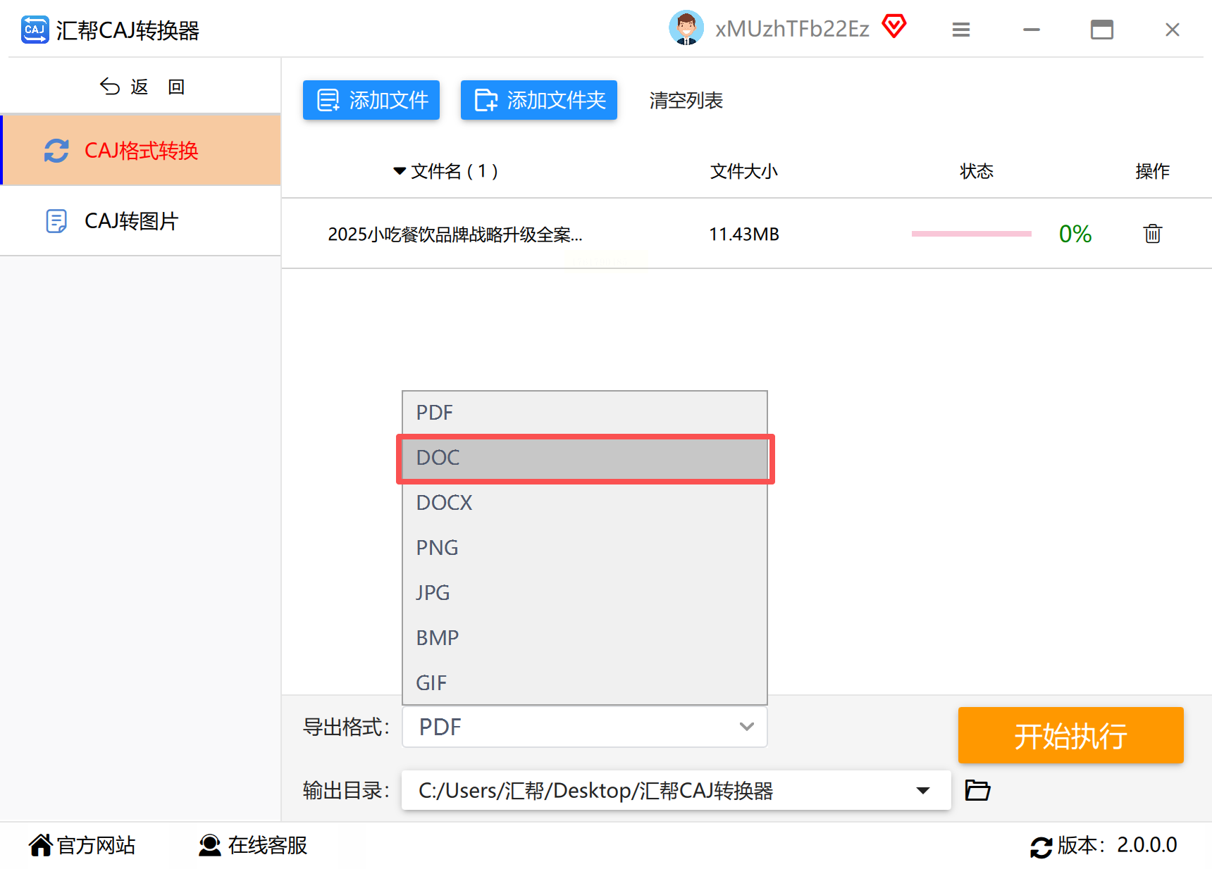 步骤一:启动软件后,在主界面选择“CAJ转Word”或“CAJ转PDF”功能模块。