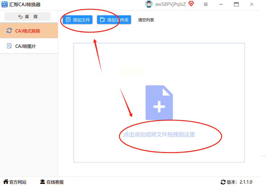 * 你可以点左上角那个醒目的【添加文件】按钮,然后在电脑文件夹里找到你的CAJ文件,选中它。
