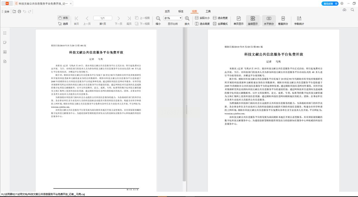 步骤一:用CAJViewer打开你要转换的CAJ文件。