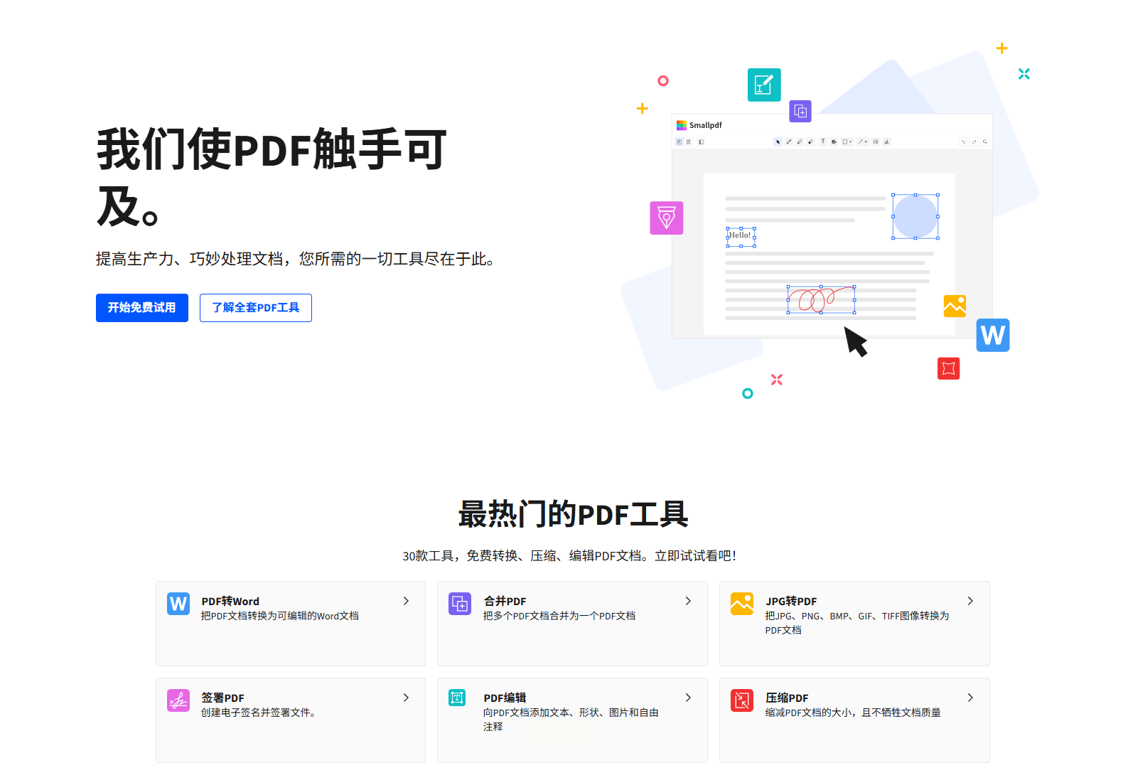 SmallPDF是一个在全球范围内拥有大量用户的在线文档处理平台,其界面简洁,操作直观。