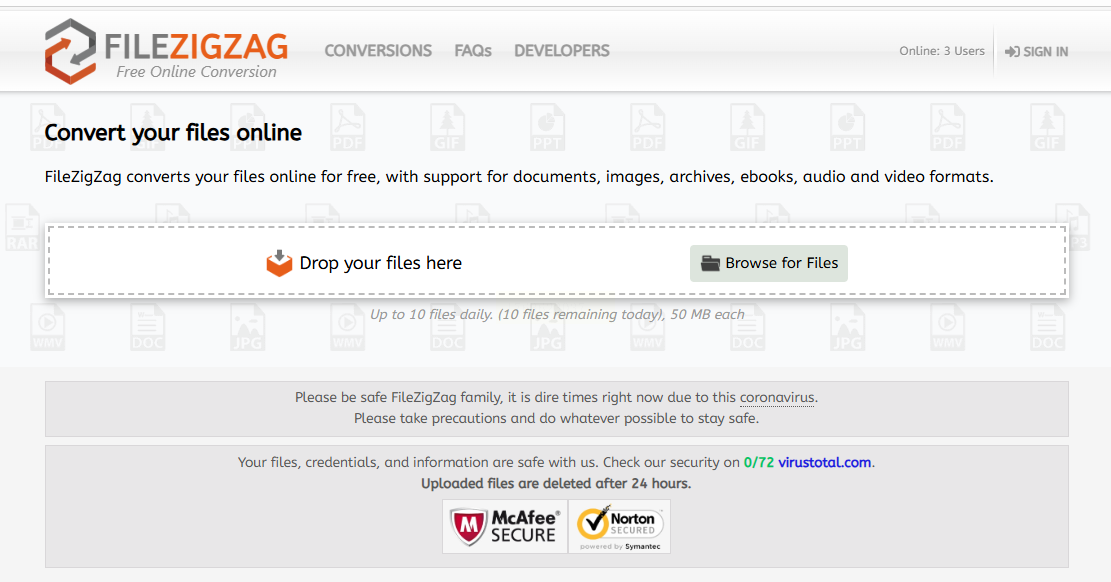 1. 进入FileZigZag官网,设置格式转换参数:输入格式CAJ,输出格式GIF;