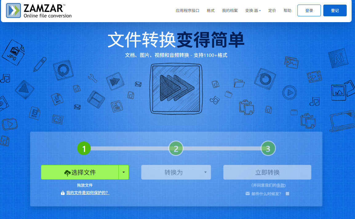 1. 打开Zamzar官网,在格式选择区选"CAJ"转"GIF";