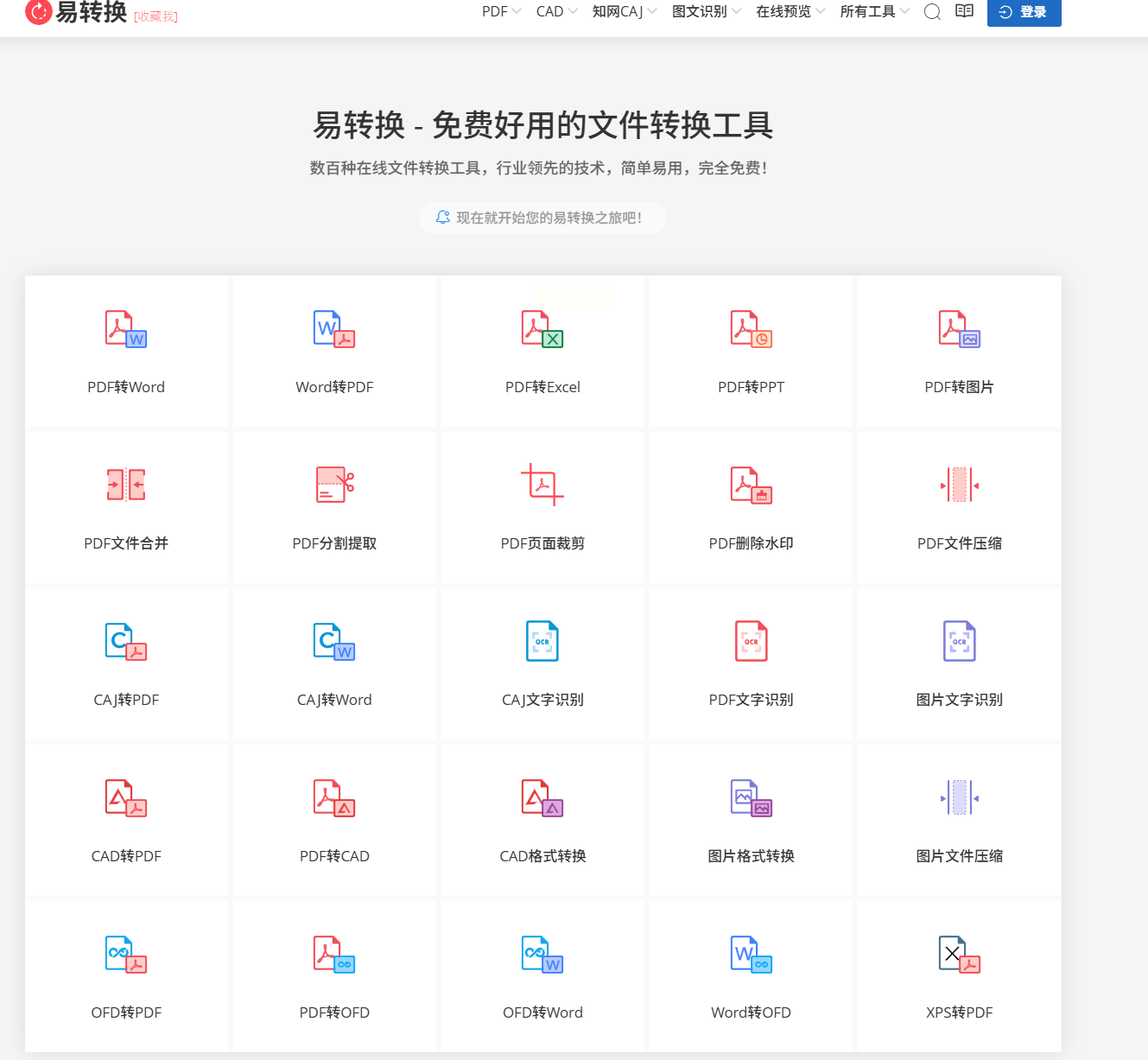 1. 打开易转换官网,找到CAJ转GIF功能入口;