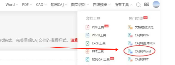 1. 打开浏览器,进入首页后点击「CAJ转换」→「CAJ转Word」。