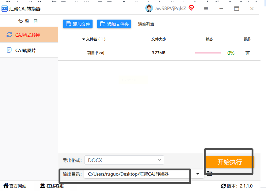 4. 点击「开始执行」,软件会自动按顺序转换所有文件,并在原文件目录下生成「备份文件夹」(包含原始CAJ文件和转换日志)。