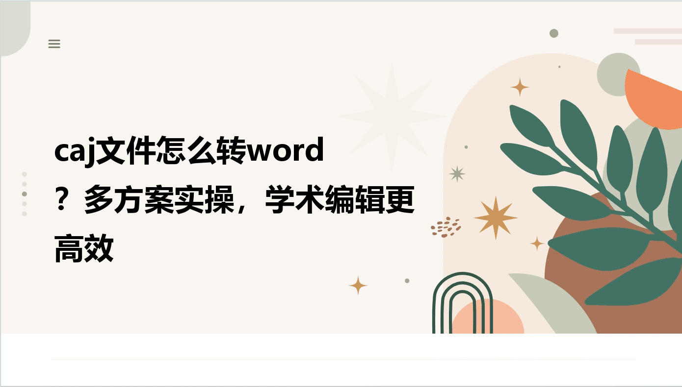 在学术研究与文档处理场景中,CAJ格式文件(中国知网等平台的特色格式)的使用频率极高,但因缺乏通用编辑工具,常面临无法复制、格式错乱等问题。将CAJ文件转换为Word格式,既能保留原文结构,又能实现自由编辑,成为众多研究者的刚需。本文将从工具对比、操作流程、场景适配三个维度,为你提供科学、高效的转换方案,帮助你快速突破CAJ格式的编辑限制。