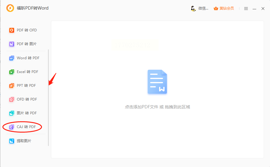 1. 安装福昕阅读器后,打开CAJ文件,点击左侧“CAJ转PDF”功能;