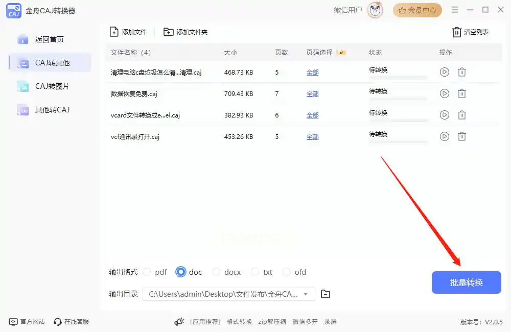 步骤四:确认输出目录(即转换后文件的保存位置),随后点击“开始转换”或“批量转换”按钮启动任务。