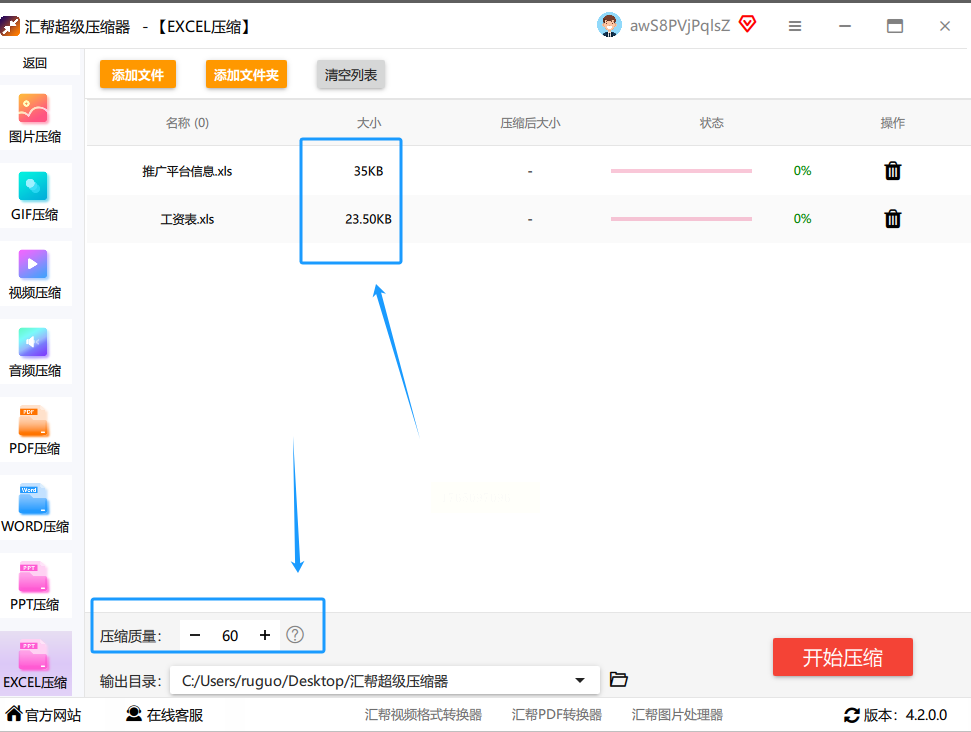 3. 设置参数:文件添加进来后,列表里会显示每个文件的名字和原始大小。接下来是关键设置。找到“压缩设置”或“输出质量”这样的滑动条或输入框。你可以拖动滑杆,或者直接输入一个百分比数字。这里有个小窍门:数值设得越低,文件压得就越小,但理论上清晰度也会略有下降。不过对于Excel里的文字和普通图表来说,调到70%-80%左右,视觉上几乎没差别,但体积能小很多。你可以先拿一个文件试试水。