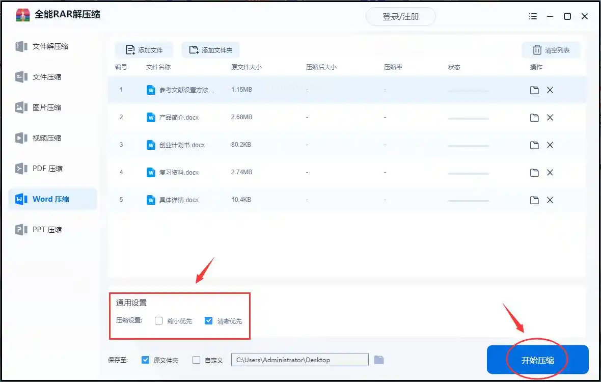 设置完成后点击“开始压缩”,软件会在后台处理文件,完成后会自动生成压缩后的Word文档。