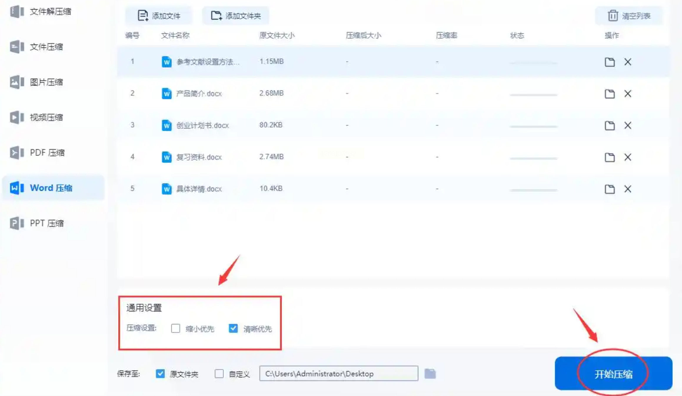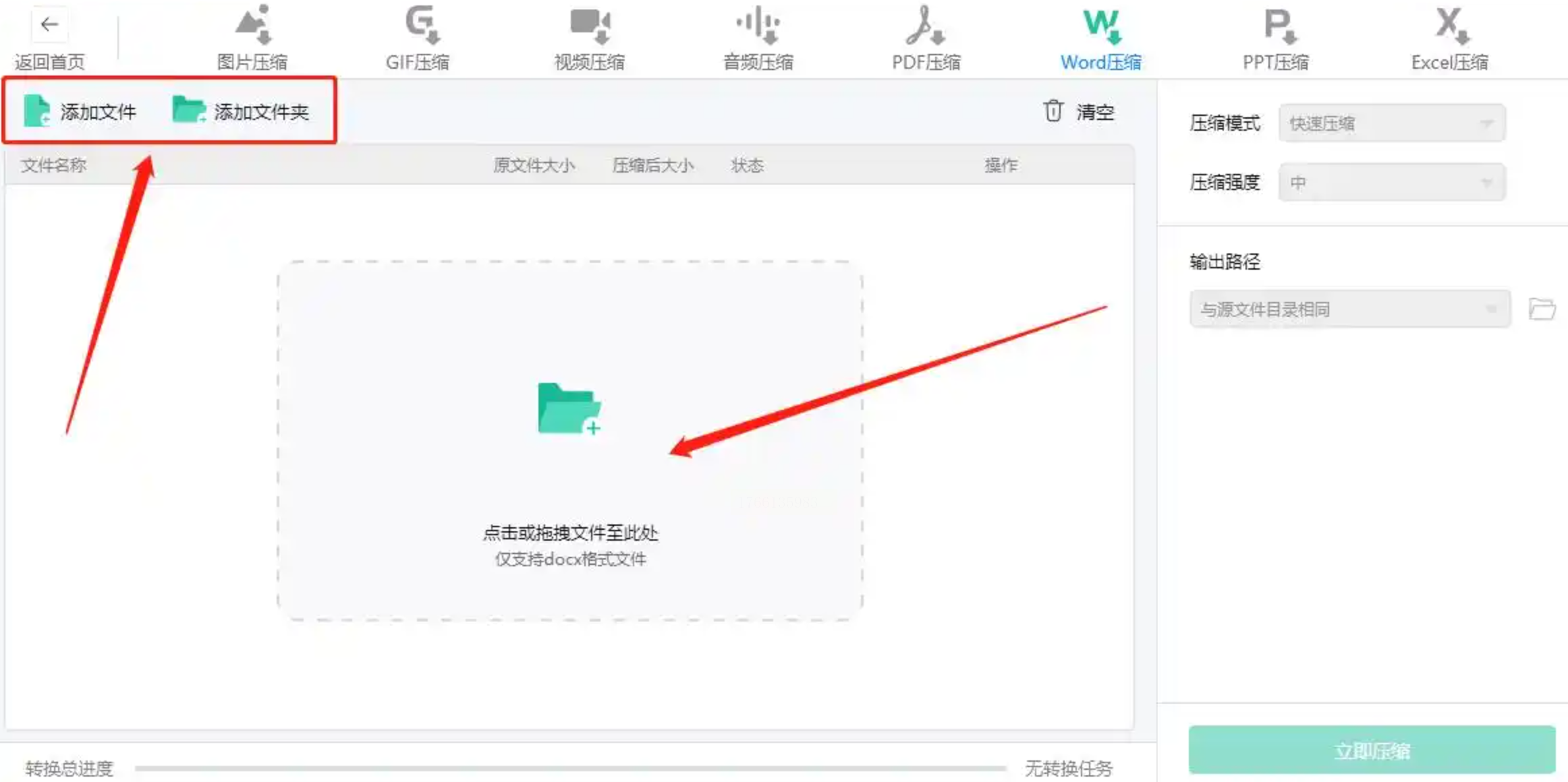 步骤二:通过“添加文件”按钮或直接拖拽的方式导入需要压缩的Word文档,支持批量导入多个文件,提升处理效率。