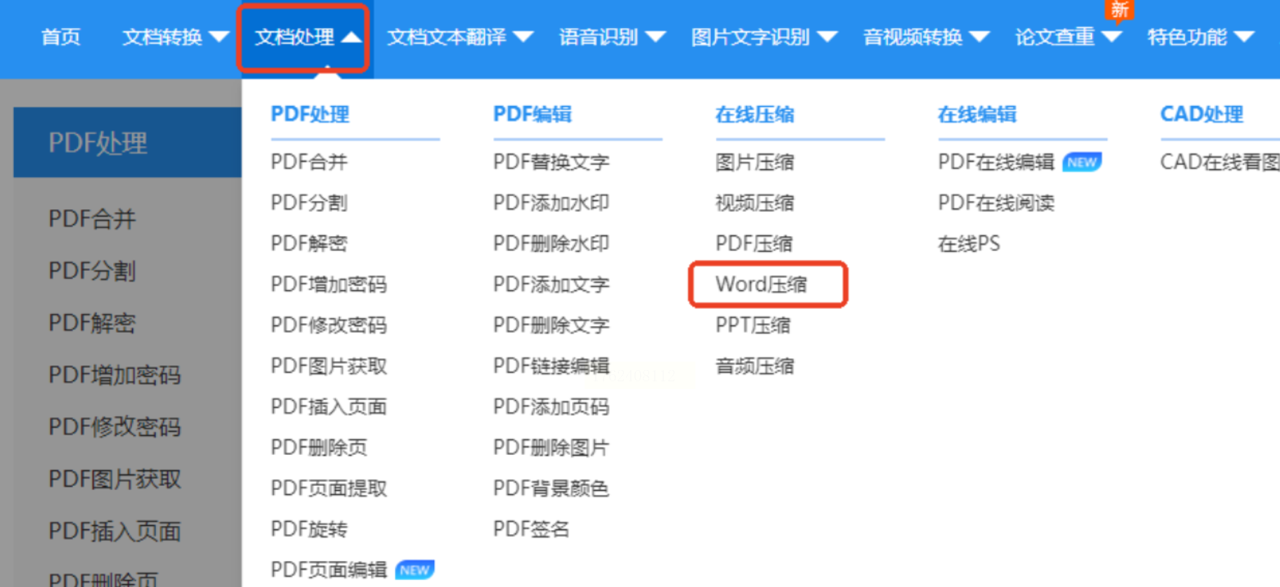 步骤一:访问相关网站,进入“文档处理”分类下的“Word压缩”功能页。