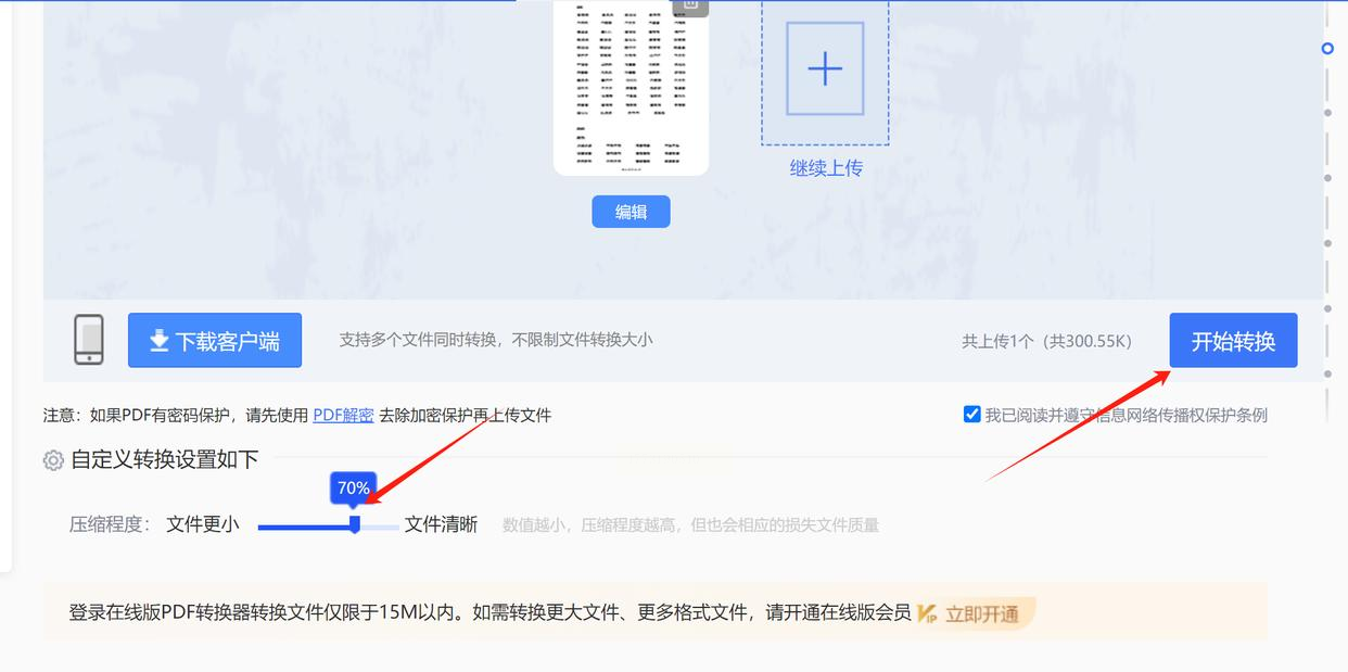 上传完成后,页面会显示"压缩模式"选项,通常有"轻度压缩"(保留高画质)、"中度压缩"(平衡体积与画质)、"深度压缩"(体积最小化)三种选择。新手建议选择"中度压缩",若发现文字模糊,下次可尝试"轻度压缩"。
