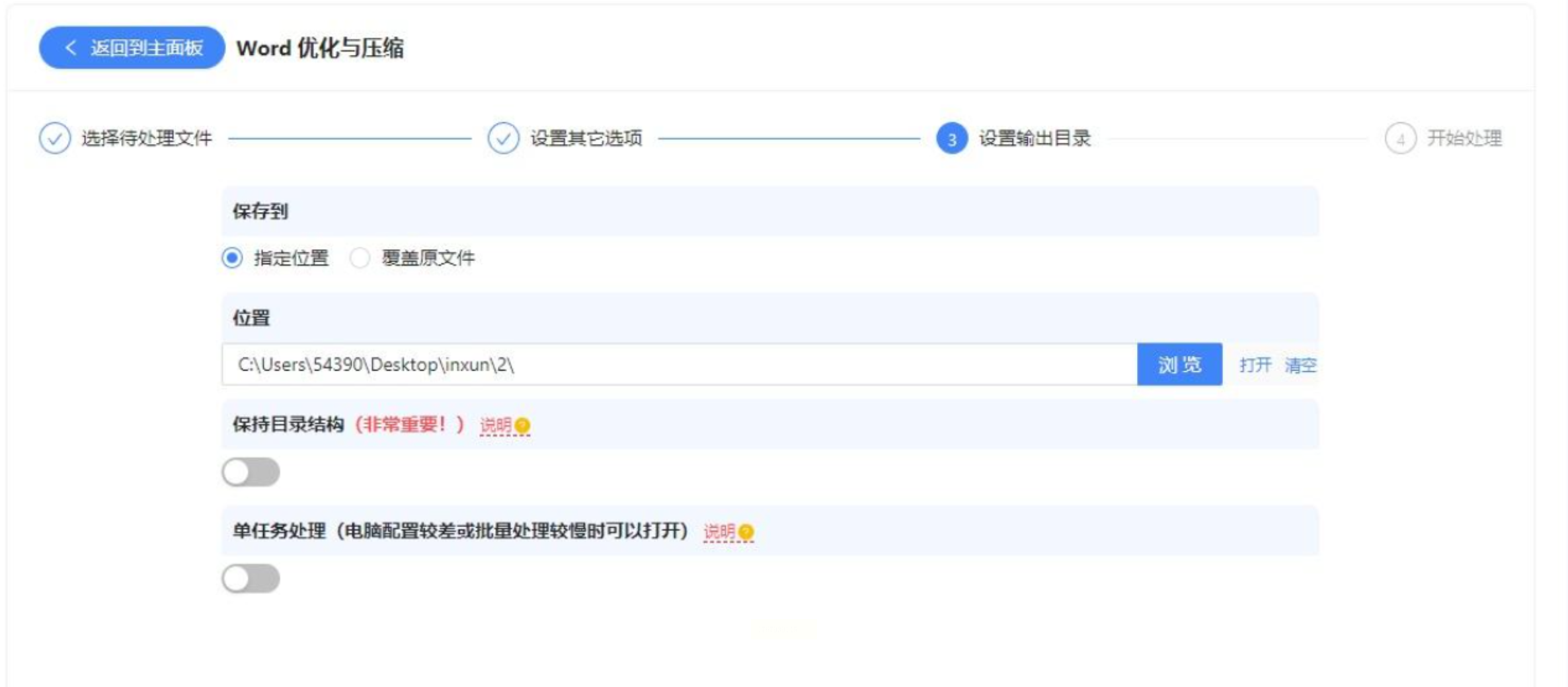 步骤四:点击【开始压缩】并等待进度完成,软件将直接生成优化后的文档,并在界面显示压缩比例。该方法适合时间紧迫、对技术细节要求不高的用户。