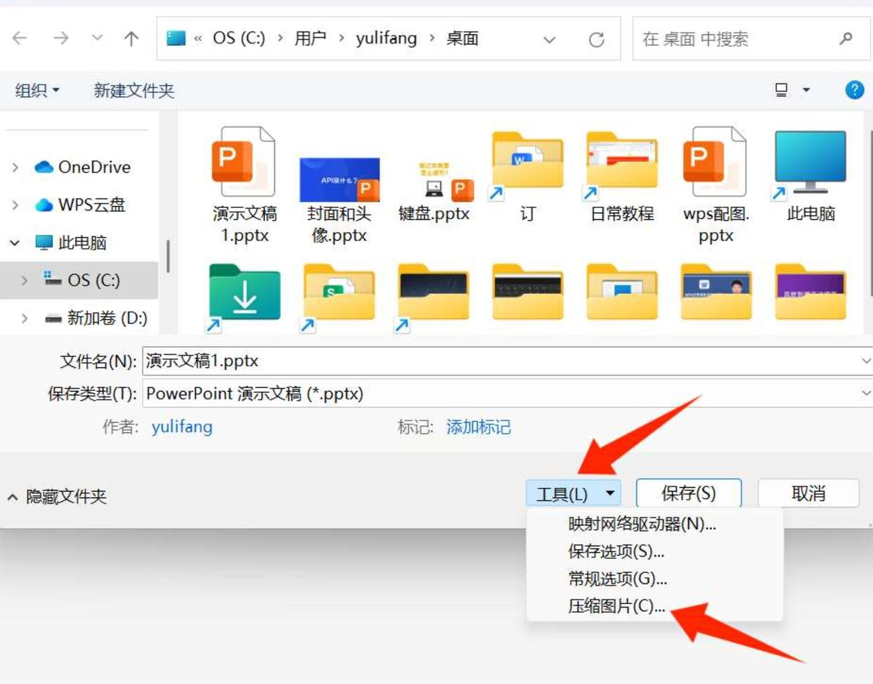 3. 保存类型下拉选“PPTX”,然后点右下角“工具”,选“压缩图片”,这步是关键!