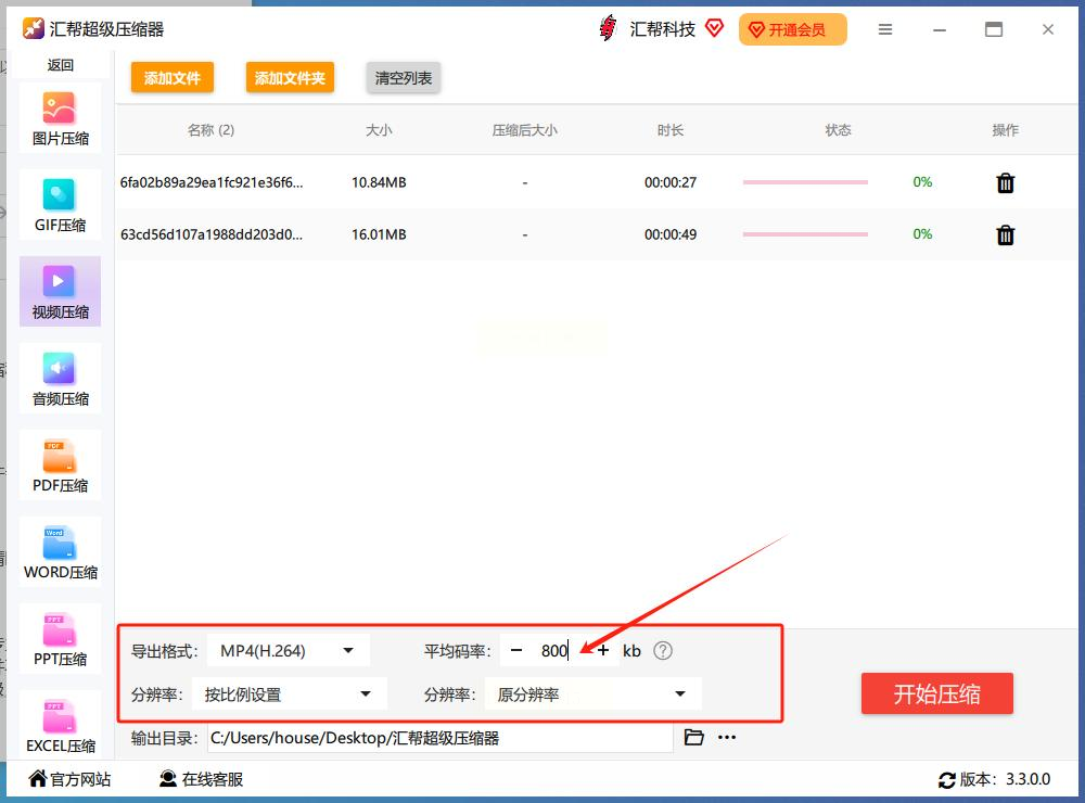 确认所有设置都没问题后,点击右下角的【开始压缩】按钮。软件会开始处理视频,并在进度条上显示压缩的进度。压缩完成后,软件会自动打开输出文件夹,让你查看压缩后的视频文件。