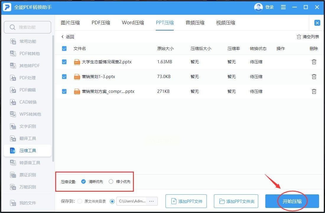 步骤一,打开软件,在主界面找到并点击“PPT压缩”功能模块。
