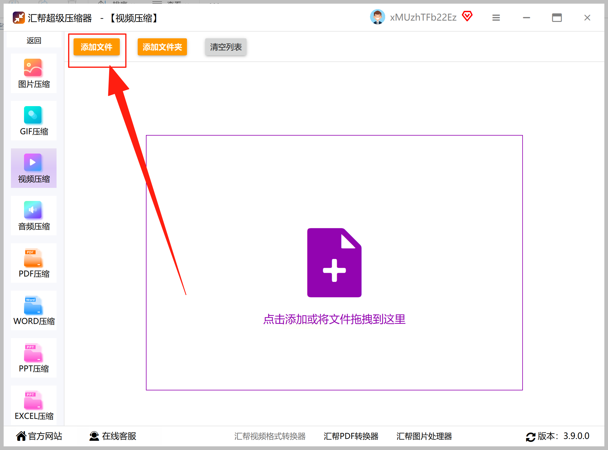 2. 添加文件:点击“添加文件”导入MP4,支持多文件批量添加。