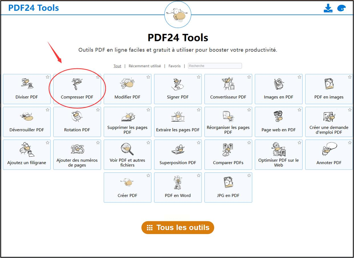 步骤一:搜索进入网站,点击“Compresser PDF”。