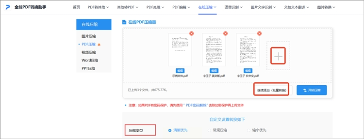 步骤二:添加需要压缩的PDF文件,支持批量操作。