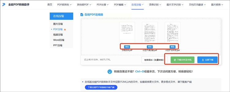 步骤三:点击压缩按钮,完成后下载到电脑。