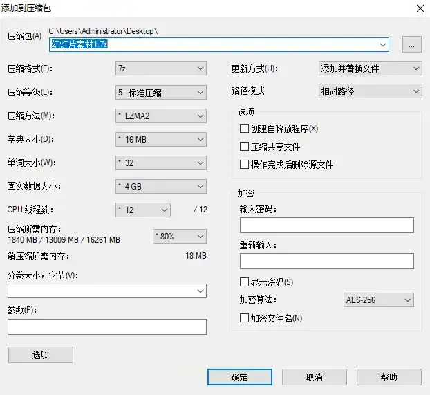 这时会弹出一个新的设置窗口。你需要在这里进行几个关键选择。在“压缩等级”这里,可以选择“标准”或者“最大”,后者能获得更小的体积,但压缩时间会稍长一些。“压缩方法”一般保持默认即可。你还可以为压缩后的新文件命名,并选择它的保存位置。全部设置好后,点击“确定”。