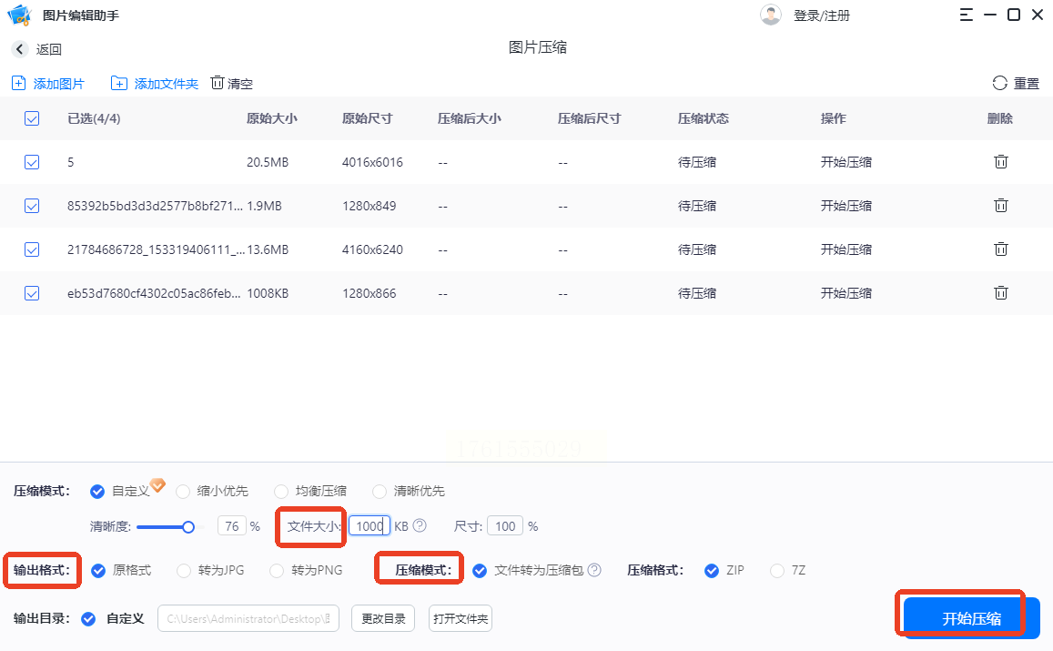 5. 开始压缩:点"开始压缩",等进度条走完,下载压缩后的图片就行!