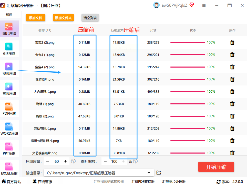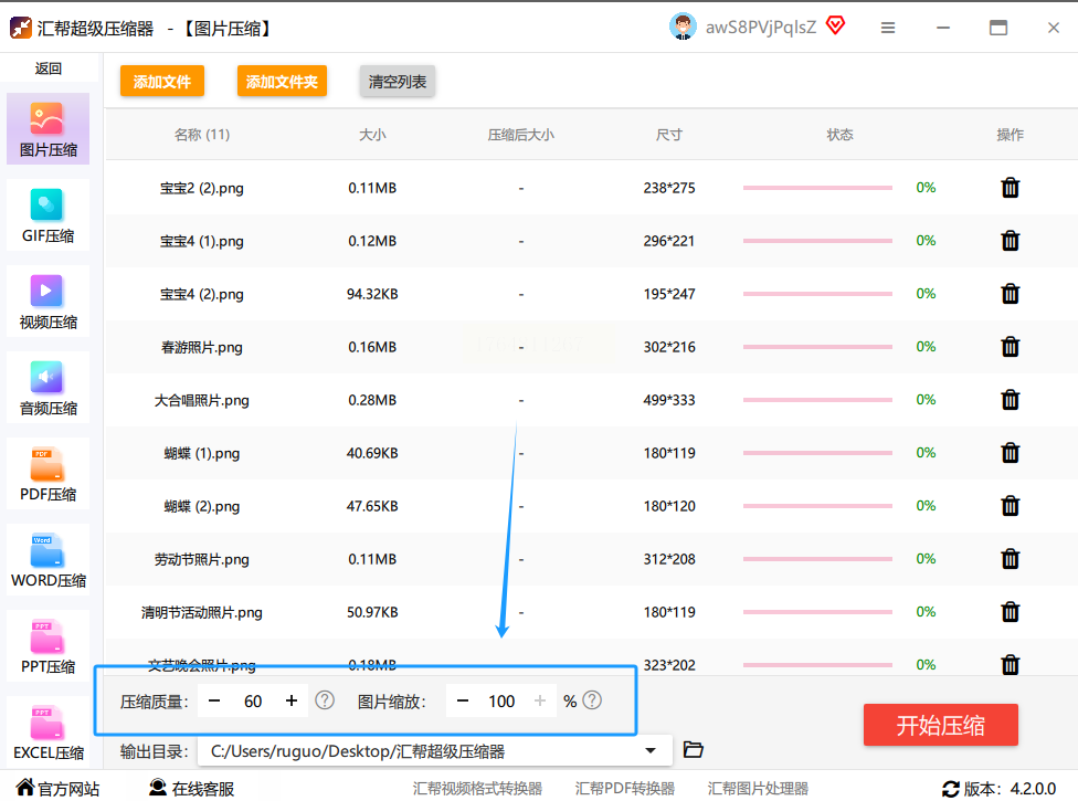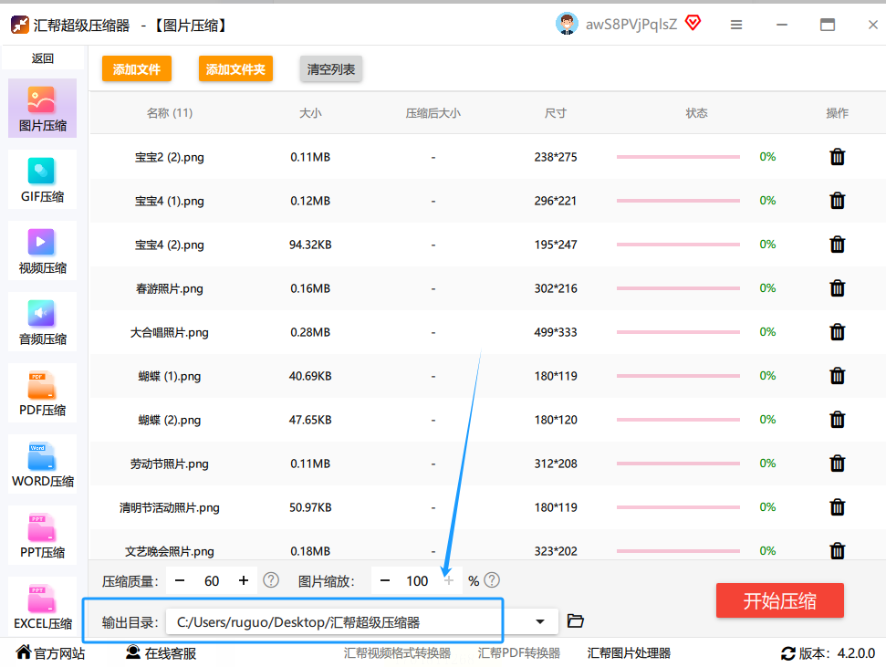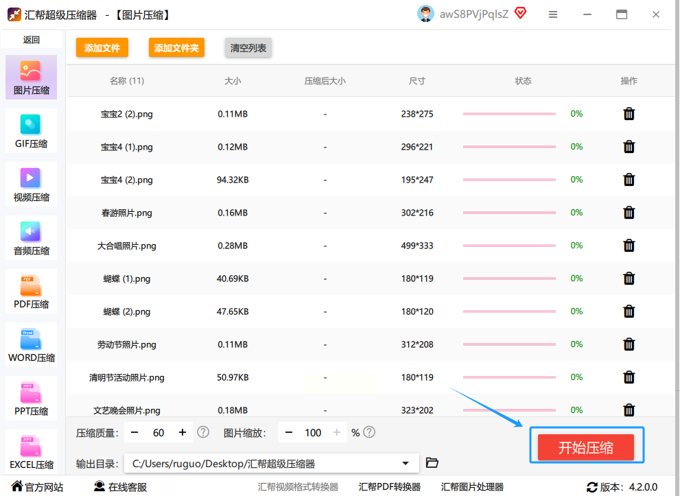 好了,前面都设置妥了。现在,深吸一口气,点击那个最显眼的“开始压缩”按钮。然后,你就可以放松一下了。喝口水,看看进度条慢慢跑满。这个过程速度取决于你图片的数量和大小,一般很快。