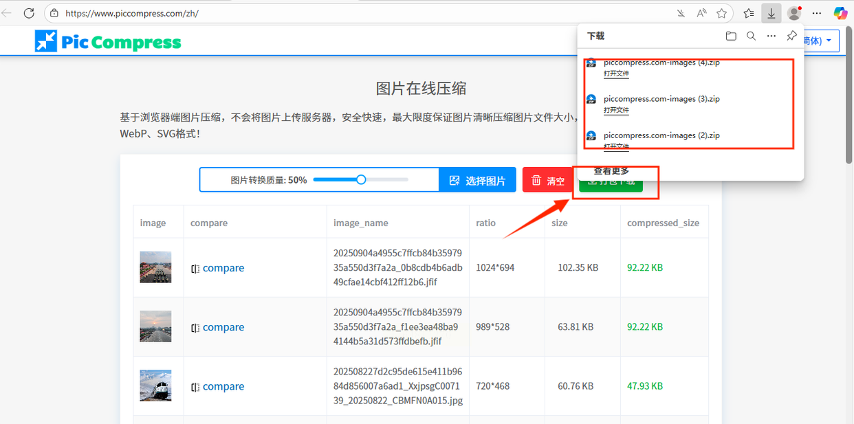 都调好了之后,不用一张张去点下载。找找“打包下载”或者“全部下载”这样的按钮。点一下,网站会把所有压缩好的图片打包成一个ZIP压缩文件,你只需要下载这一个文件,解压出来就是全部成果了,省时省力。