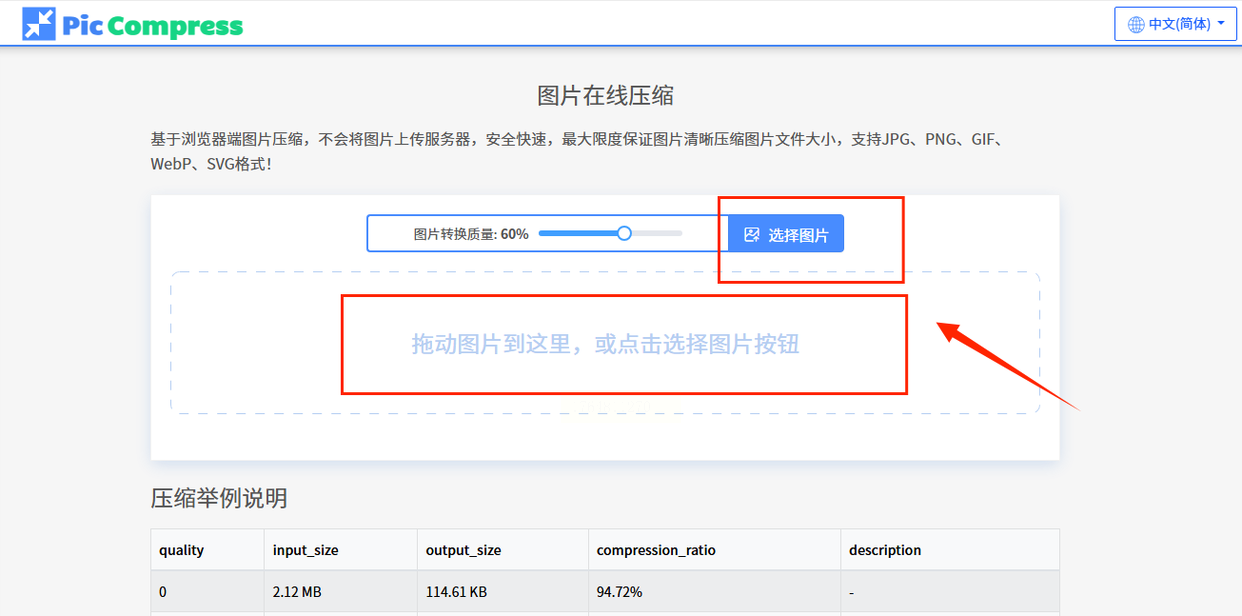 打开它的网站,你会看到一个很大的虚线框区域,或者一个“选择图片”的按钮。你可以点击按钮选文件,也可以更直接——把要压缩的图片文件从文件夹里直接拖到这个虚线框里。一松手,图片就开始上传了。