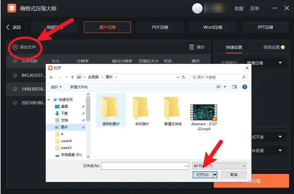 2. 文件导入:点击“添加文件”按钮,支持从本地文件夹拖拽导入图片,或使用“批量导入”功能一次性添加数十张图片。