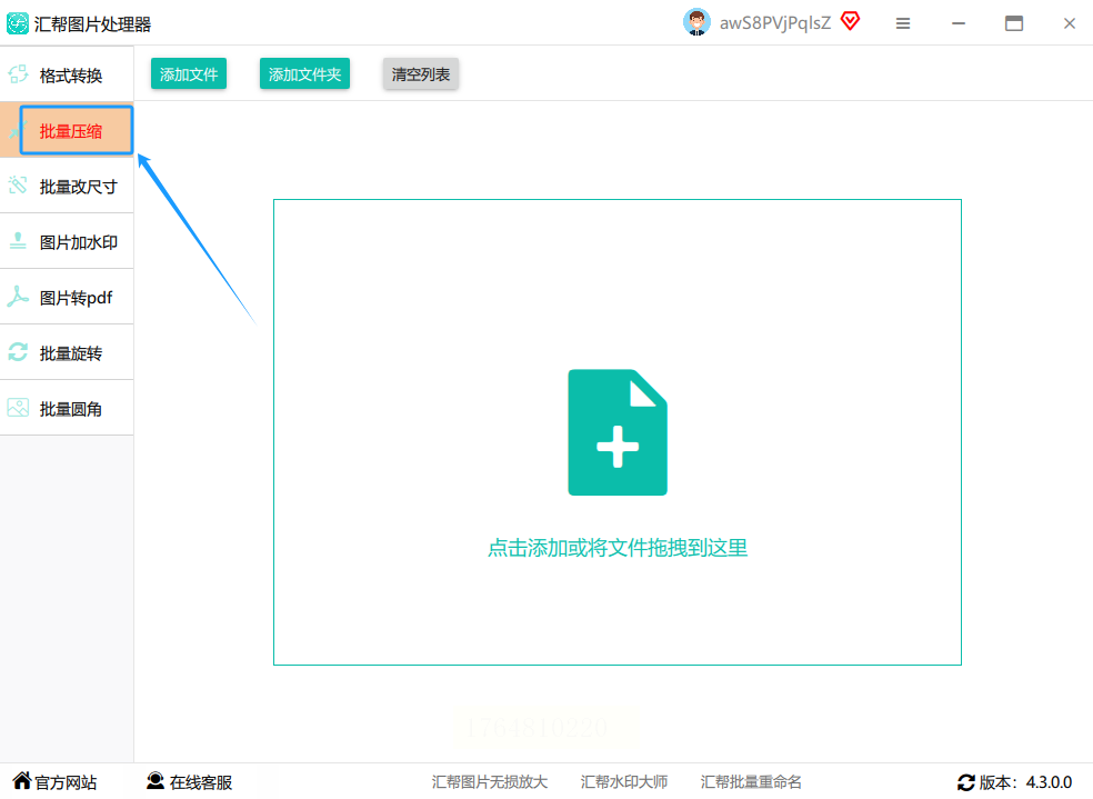 2. 点击进入批量功能后,添加你需要压缩的所有图片。