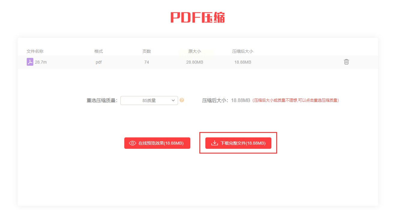 4. 预览与下载:压缩完成后,点击“预览”可查看效果。若不满意,可点击“重新压缩”调整参数;确认无误后,点击“下载”保存到本地。