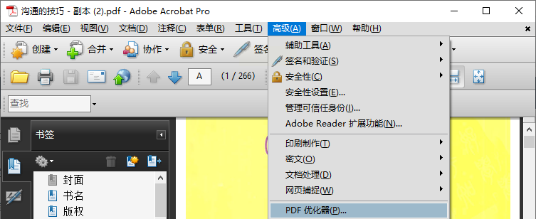 2. 进入优化设置:点击顶部菜单“高级”→“PDF优化器”,打开优化窗口。