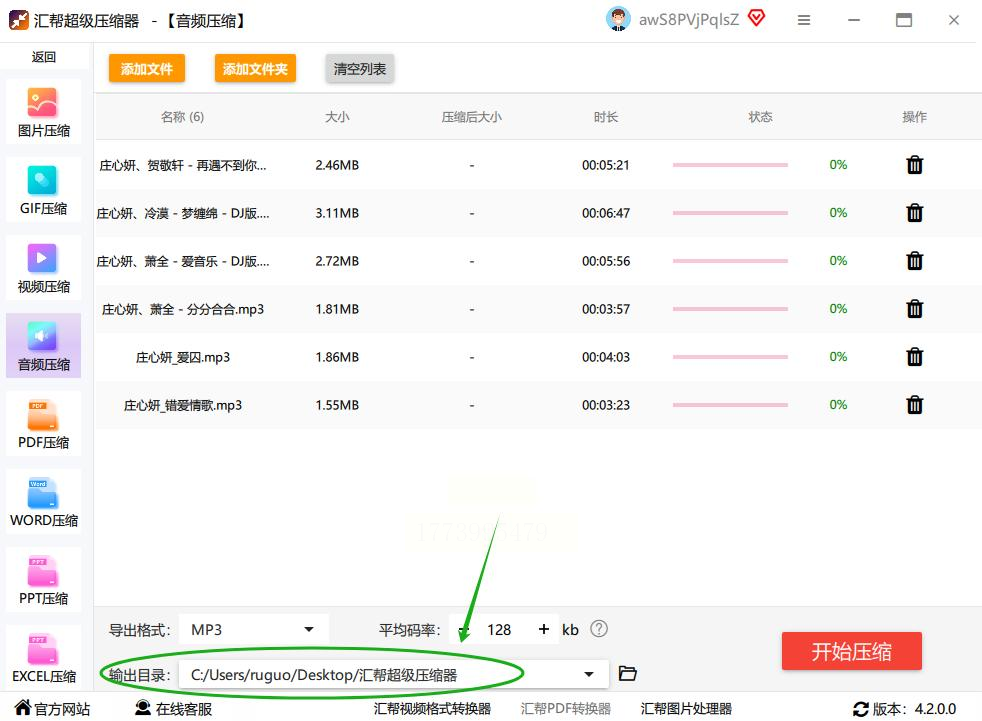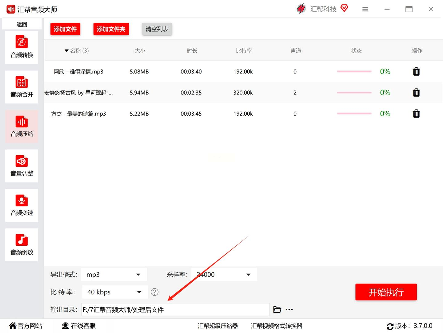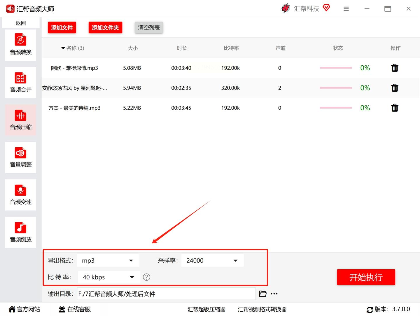 - 输出目录:建议单独创建文件夹(如“压缩后音频”),方便后续查找。