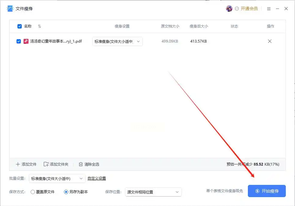 5. 点“开始压缩”,等进度条走完就好了,压缩完会自动提示“压缩成功”