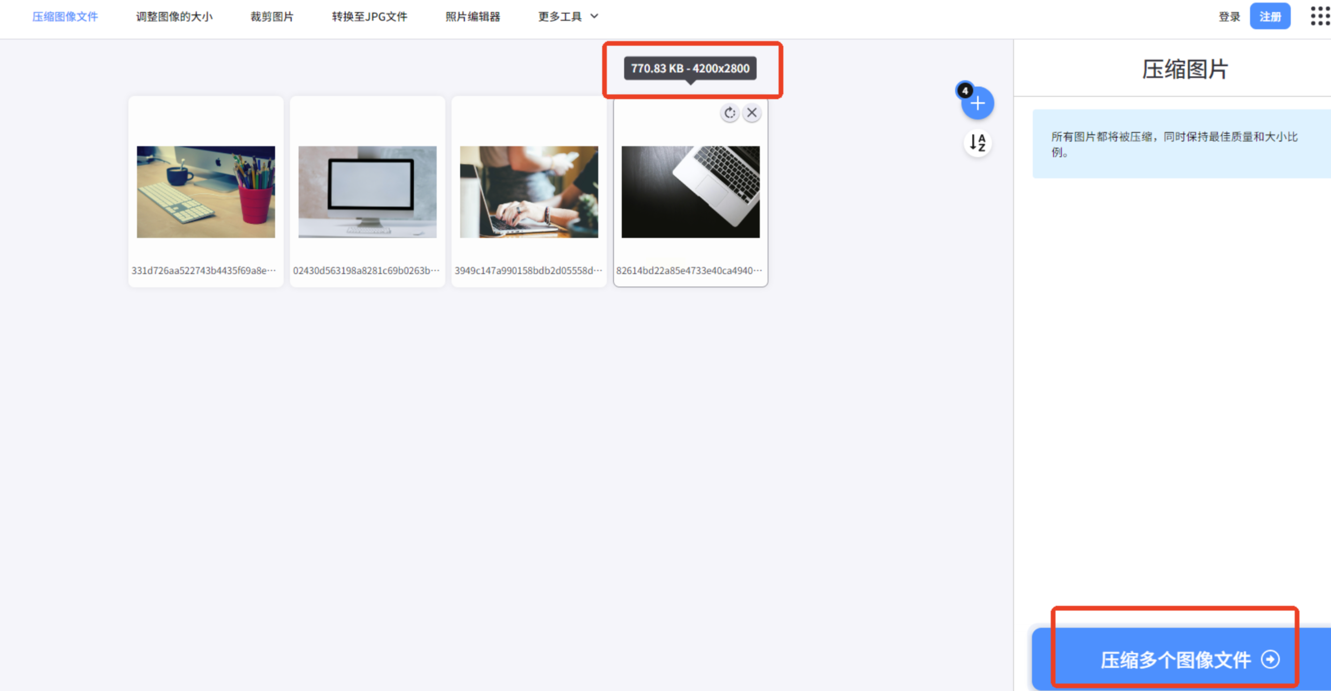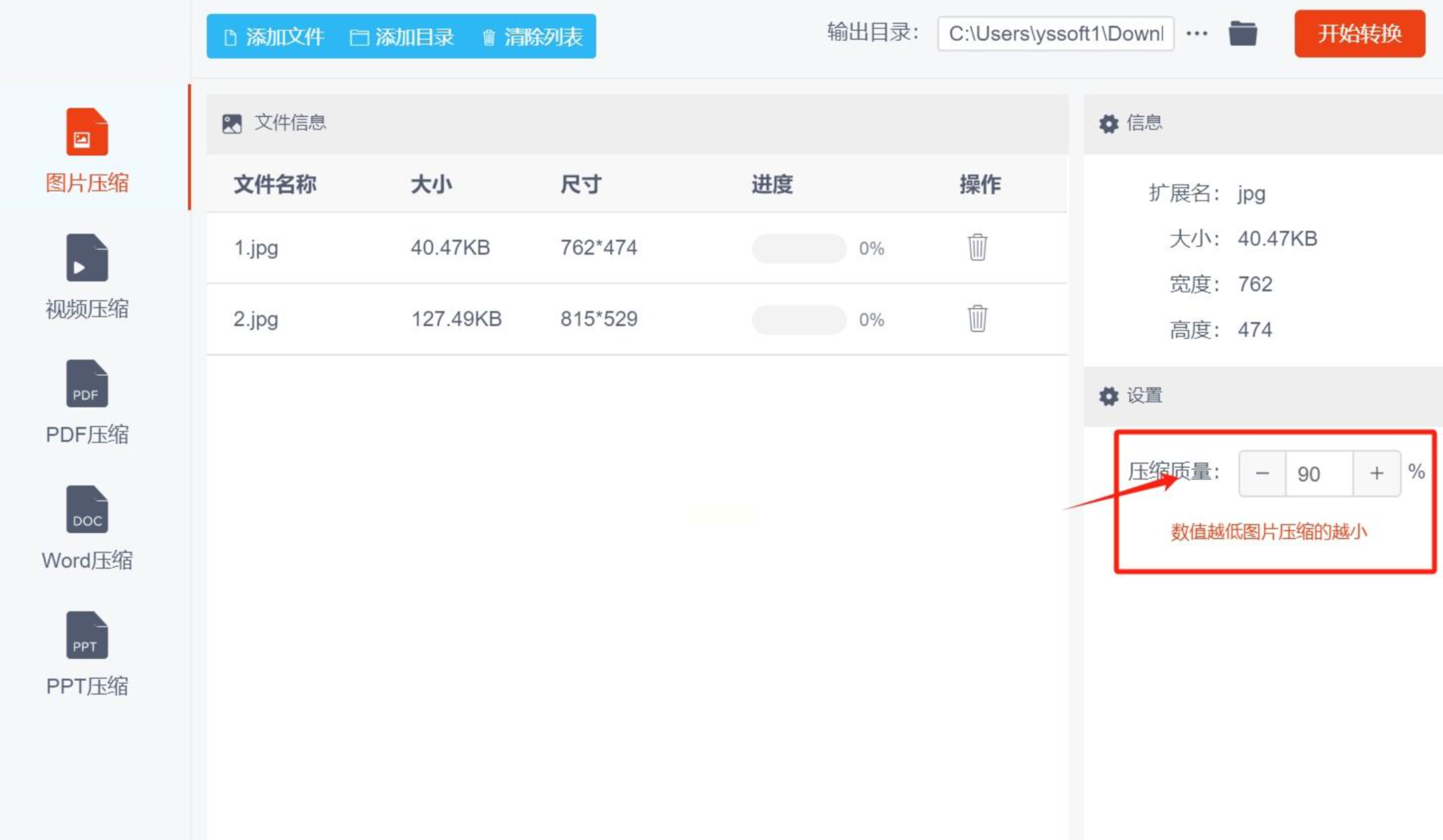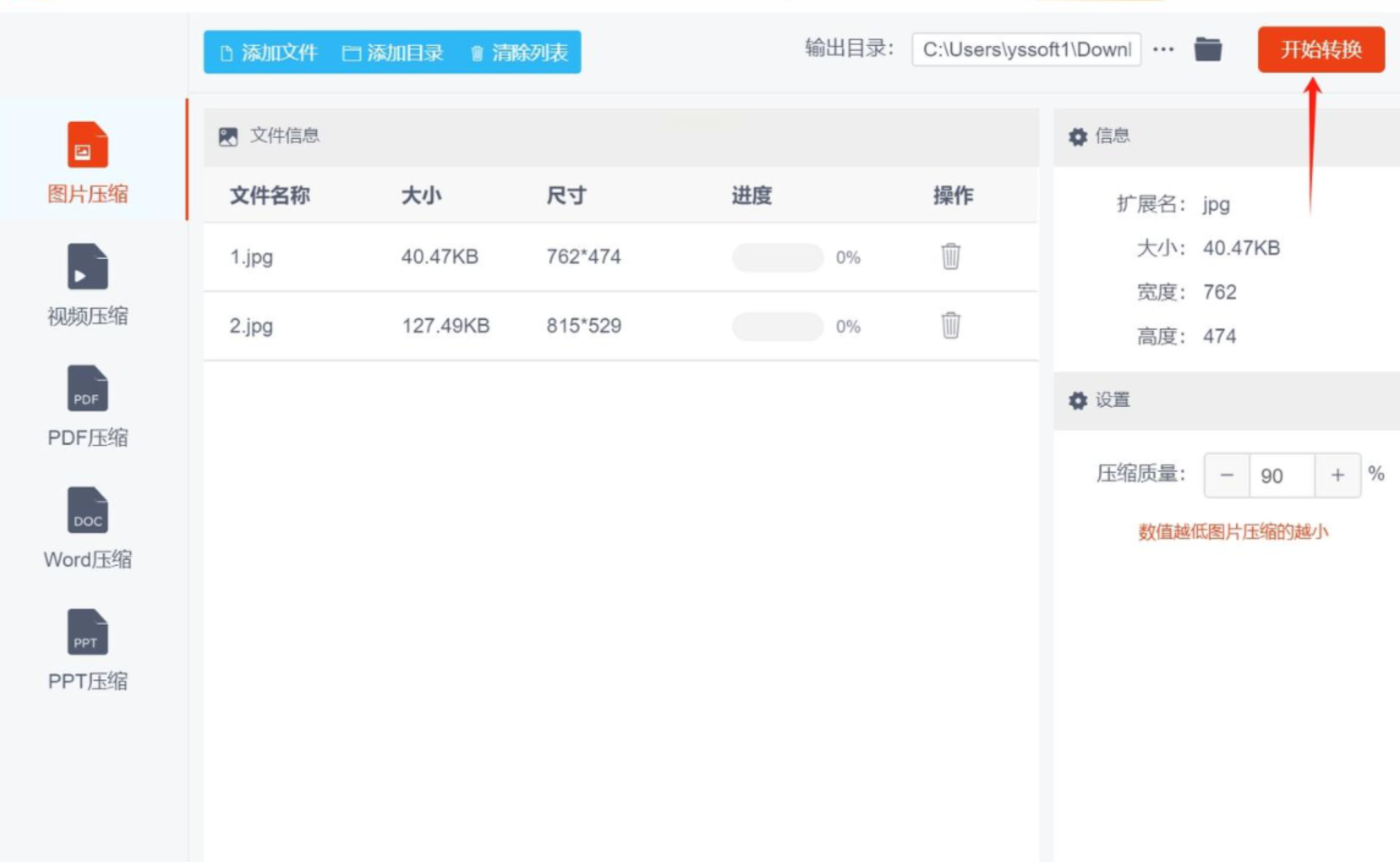 * 这个软件支持批量处理,所以你可以一次性添加多张图片,一起进行压缩,非常省时间。