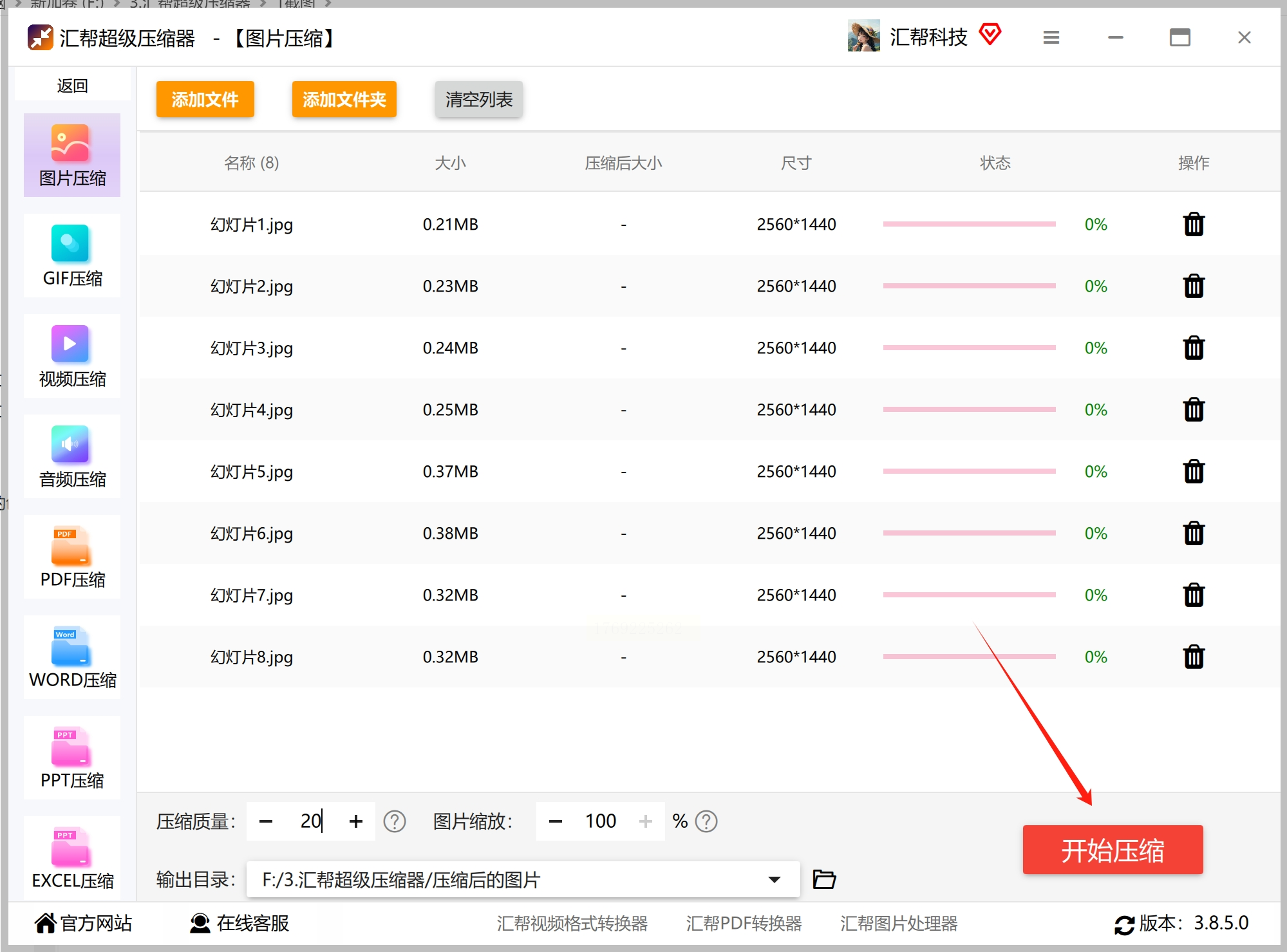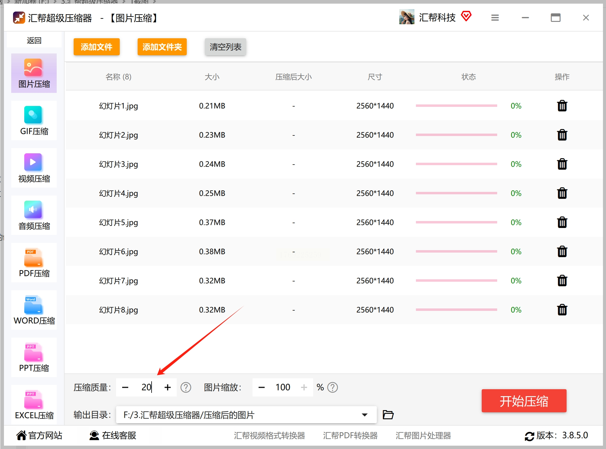 方法一:用“汇帮超级压缩器”压缩减少jpg图片的占用空间